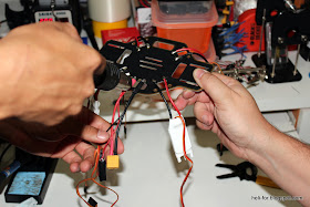 Solde cada ESC na placa Bottom Board obedecendo a polaridade, fio vermelho no ponto (+) e fio preto no (-).